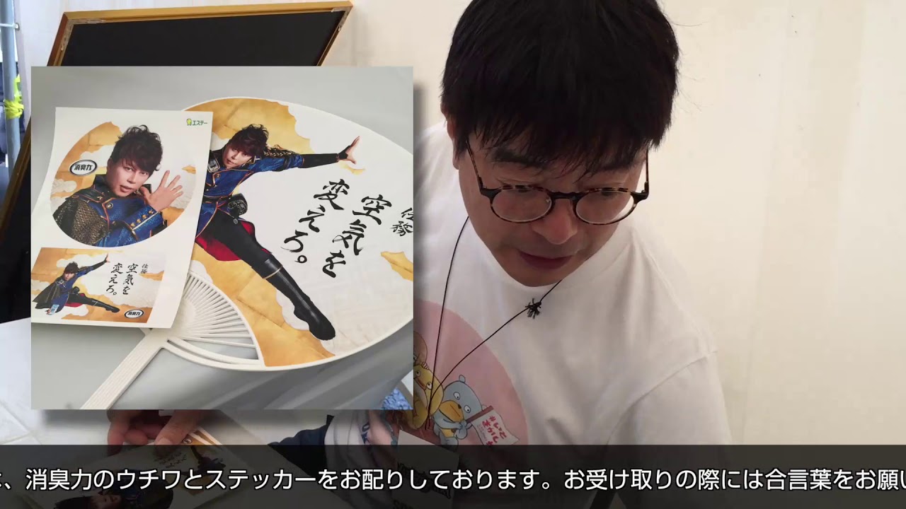 ただ、それでは「おもてなし」にならないだろうと、西川貴教様ゆかりのCM制作物をいっぱい飾らせてもらうことにしました。うちわやシールも(数に限りはございますが)皆様にお渡しするつもりです。お持ち帰りのためにクリアファイルを各自ご準備されることをお勧めします。